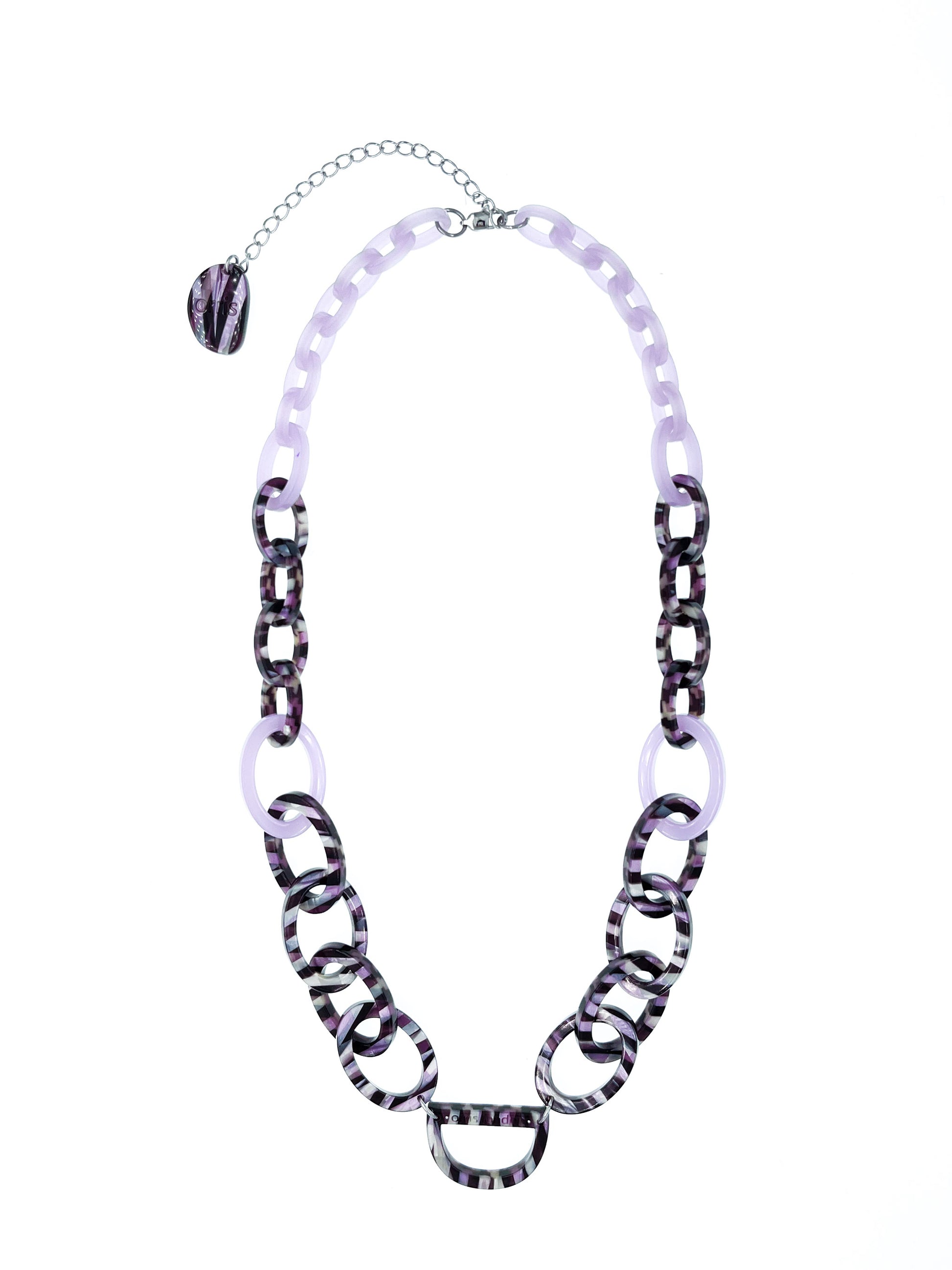 Original D Glasses Necklace is a stylish alternative to ordinary glasses chains and spectacle holders. It is composed of bold hoops made of Italian acetate, joining at the signature ‘D’ shape, creating a beautiful necklace that holds your glasses. You can wear it alone as a necklace, or hang your reading glasses, sunglasses or optical glasses on it.